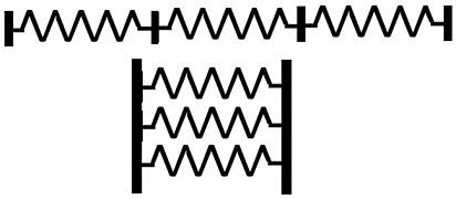 A force of 15 KGs compresses 3 springs in series by a distance of 15 cms. How much springs in parallal will be compressed?