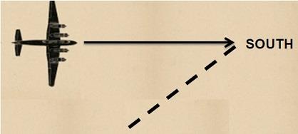 The aircraft flies as indicated then changes course to follow the dotted line. Its new direction will be?